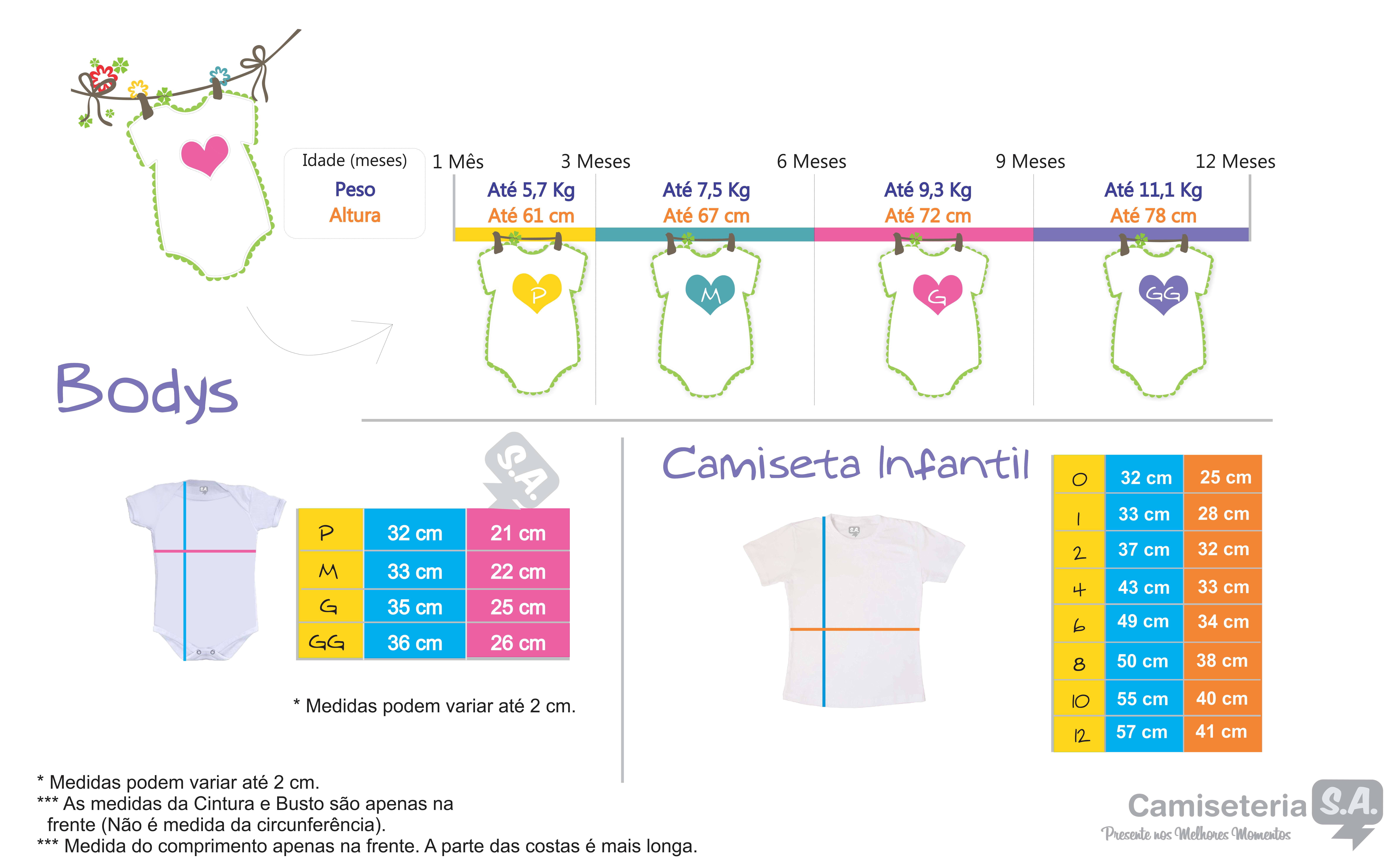 *Atenção a tabela de medidas, não fazemos trocas por tamanho por se tratar de um produto personalizado.