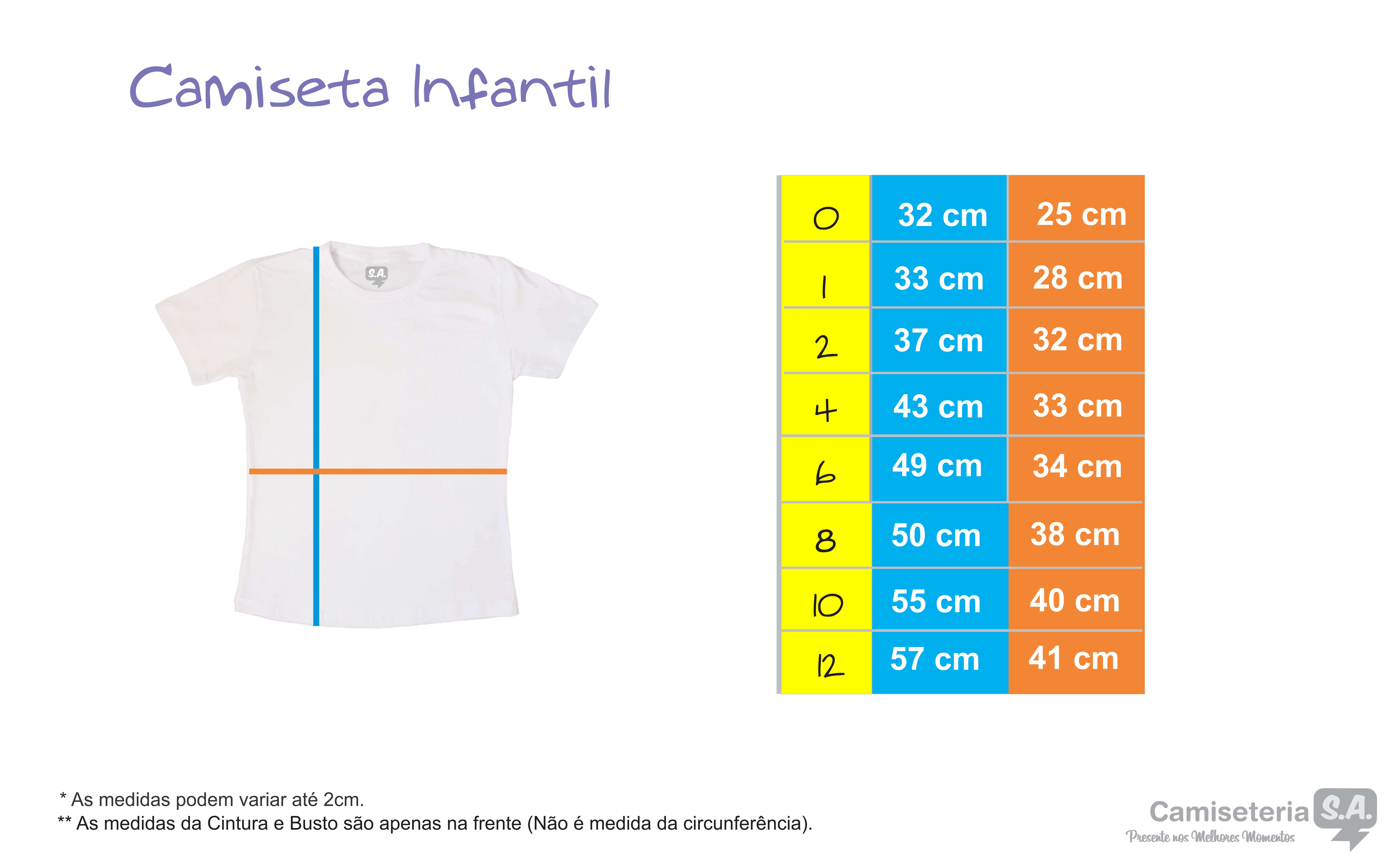 Obs: A peça é um BODY apenas do tamanho P ao GG. Do tamanho 1 ano até 12 anos é CAMISETINHA.