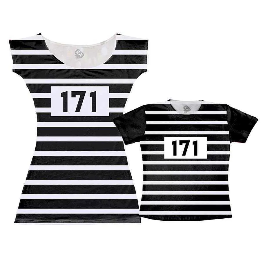 Vestido e Camiseta em malha Flamê com estampa total, frente e verso.
