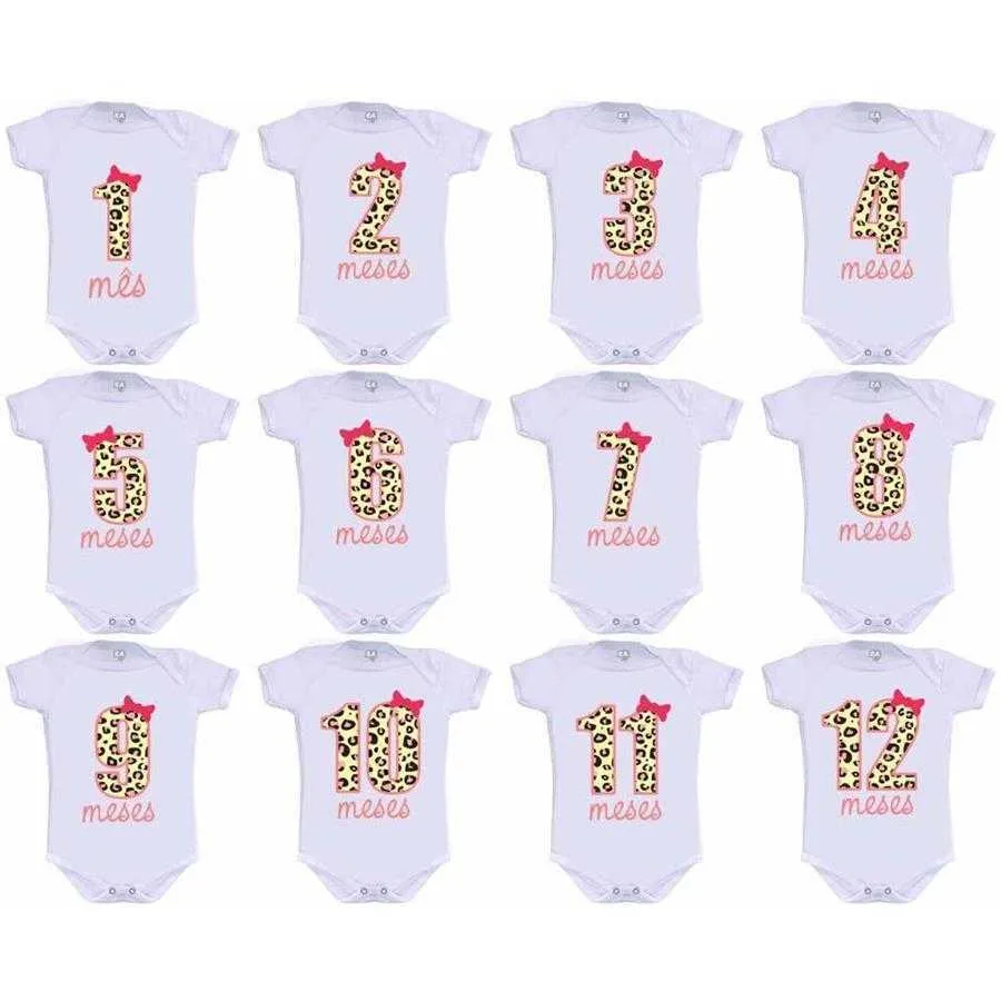 O Kit Mesversário contém 12 bodies, ideal para comemorações, fazer sessão fotográfica e participar, mês a mês, da evolução dos bebês.