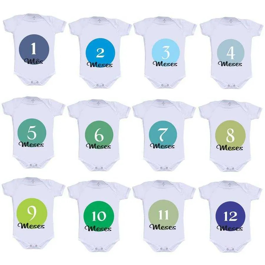 O Kit Mesversário contém 12 bodies, ideal para comemorações, fazer sessão fotográfica e participar, mês a mês, da evolução dos bebês.