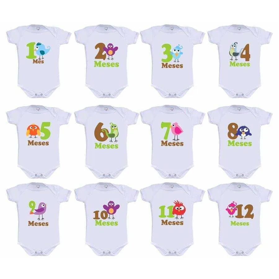 O Kit Mesversário contém 12 bodies, ideal para comemorações, fazer sessão fotográfica e participar, mês a mês, da evolução dos bebês.
