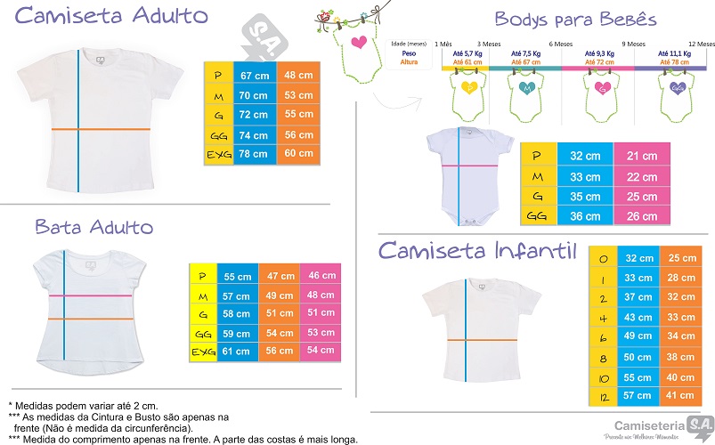 *Atenção a tabela de medidas, não fazemos trocas por tamanho.