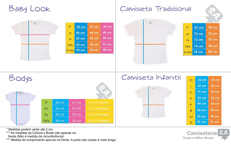 *Atenção a tabela de medidas, não fazemos trocas por tamanho.