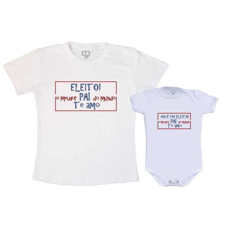 Com nossas camisetas personalizadas, você tem um look perfeito para agregar descontração e charme para uma produção para Pai e Filho.